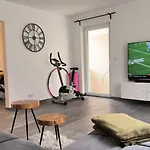 The spacious 80 m² Modern 1Br Apt W King Size, Only 5 Min To Rab Ramstein-Miesenbach provides swift access to various city landmarks, such as the Catholic Parish Church of St. Nicholas, located merely 5 minutes' walk away. Wi-Fi is provided for both business and leisure activities.